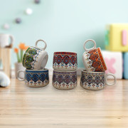 Add a vibrant touch to your tea time with NaturEdge Handcrafted Multicolor Ceramic Cups. Featuring artistic Rajasthani designs, this set of 6 (150ml) cups combines tradition and elegance, perfect for enjoying tea, coffee...
