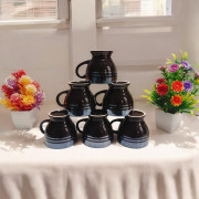 The NaturEdge Small Ceramic Cup Set of 6 (100ml) combines premium craftsmanship with a sleek diamond black design and silver patta accents, offering both style and functionality for your tea experience.
