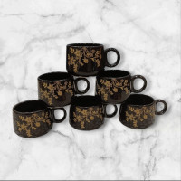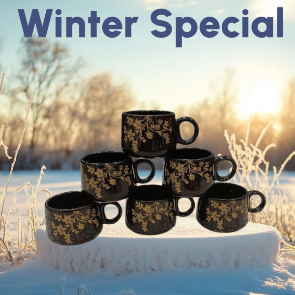 Naturedge Ceramic Cups - Set of 6, 150 ml combine handcrafted elegance with premium quality. These antique black tea/coffee cups feature a stunning golden flower design, adding a touch of sophistication to your drinkware collection. Made from high-quality ceramic, each cup is meticulously handcrafted for durability and a refined finish. Ideal for tea, coffee, or any beverage, this set from the Naturedge Collection is the perfect blend of artistry and functionality, making it a luxurious addition to any home or a thoughtful gift.